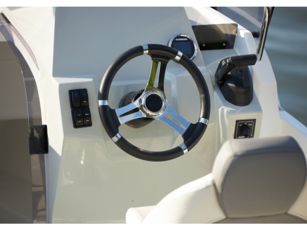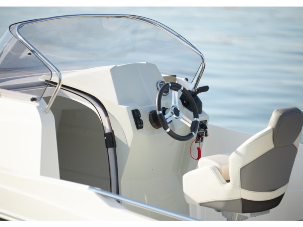 Ve standardní výbavě najdete například grafitový plexisklový kryt, volant, řídící zařízení, 15FT řídící páka, přední úložný prostor pro kotvy s odtokem vody, košík z nerezové oceli, boční lišty, posuvné dveře kabiny, nerezové odtoky vody v kokpitu se zpětnými ventily