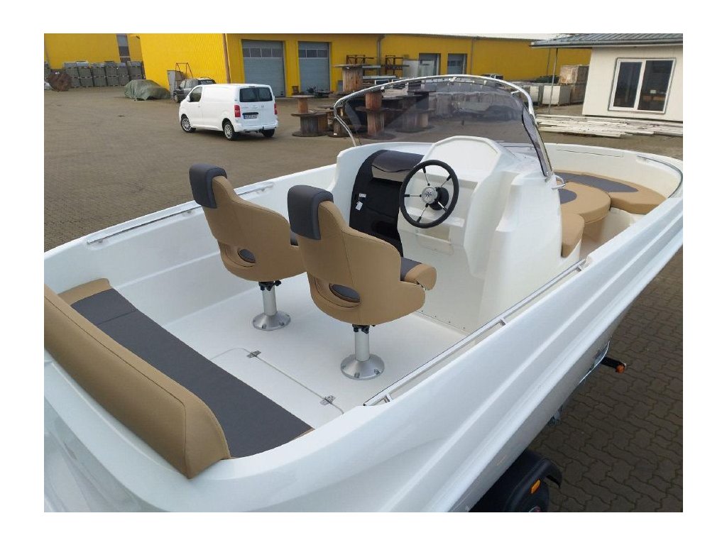 Loď je vyrobena z odolných materiálů, což zaručuje její robustnost a odolnost vůči různým vodním podmínkám. Je ideální pro klidná jezera, řeky a pobřežní vody.