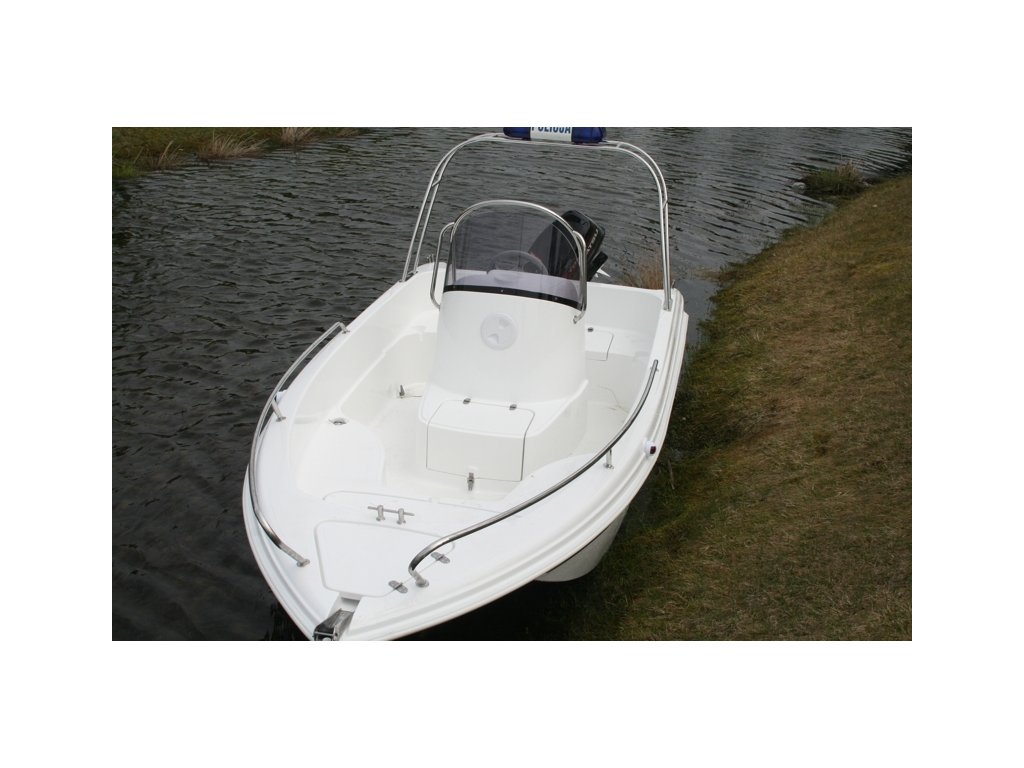 Otevřený motorový člun snadno transportovatelný.