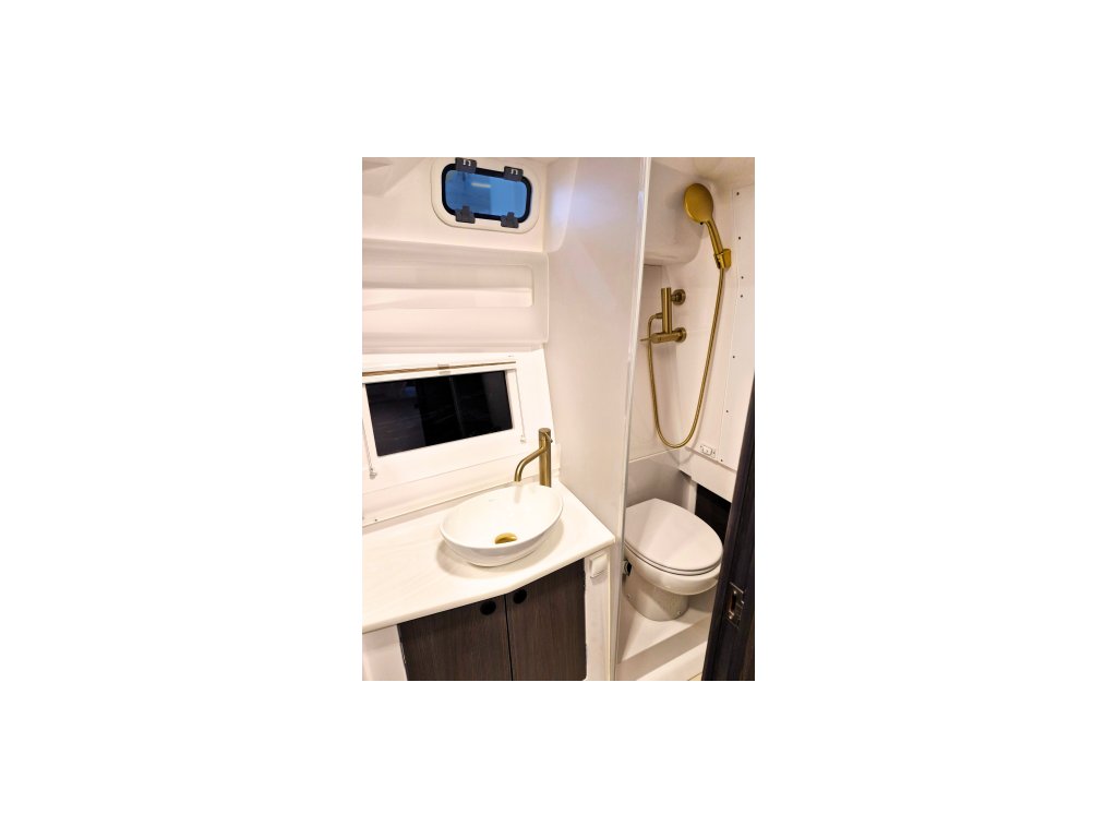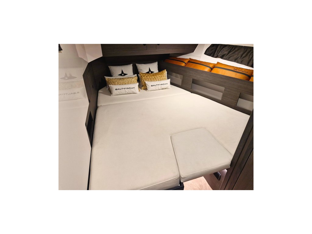 Inteligentně navržená kajuta nabízí lůžko v plné velikosti, vysoce kvalitní povrchové úpravy a moderní a stylové detaily, které zdůrazňují prémiový charakter lodi. Pohodlná ložnice, elegantní koupelna se samostatným sprchovým koutem a ergonomická kuchyňka dělají z Balt 950 SH ideální volbu jak pro víkendové pobyty, tak pro delší plavby.