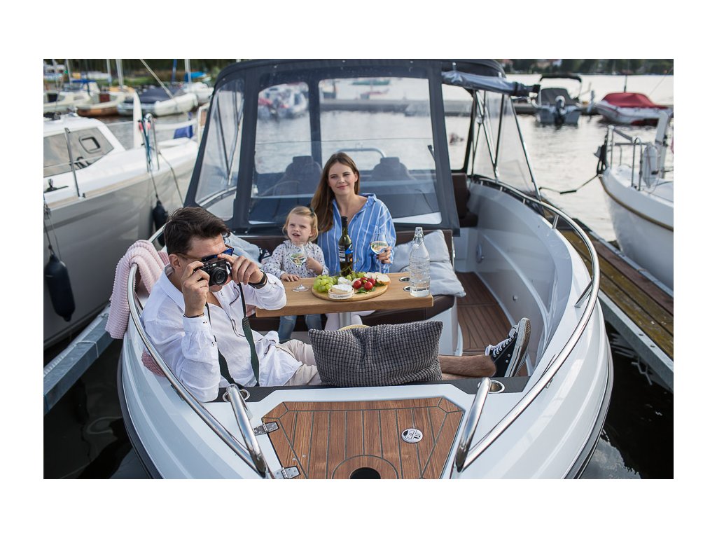 V přední části se nachází místo na sezení u stolku, které se snadno přemění v relaxační opalovací plochu. Pod konzolí řízení se nachází dostatek místa na uložení věcí, případně se nouzově schovat před deštěm. V zadní části za otočným křeslem řidiče a spolujezdce se nachází dlouhá pohovka, která se dá využít dvěma způsoby. Sezení po směru jízdy a po překlopení vznikne zadní opalovací plocha. Tento systém je ideální pro zábavu na vodě.
