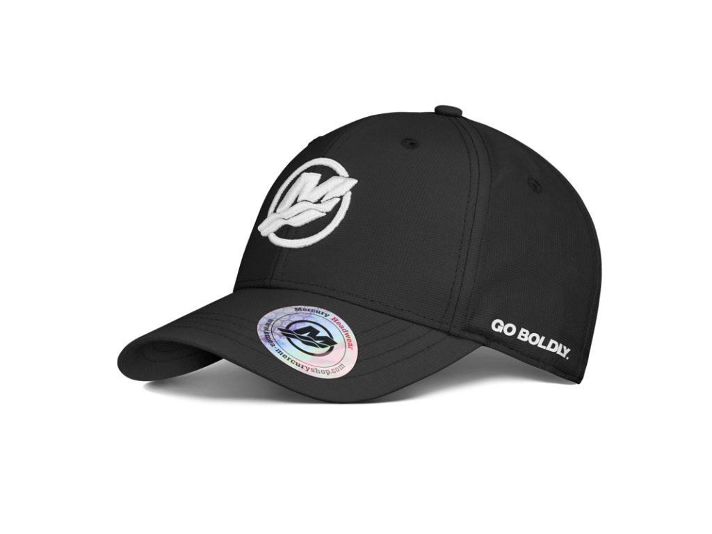 Kouzlo spočívá v detailu: Černá baseballová čepice z kolekce Mercury přitahuje pozornost mnoha detaily. Logo Mercury je na přední straně výrazně zobrazeno jako 3D výšivka, na boku je natištěno logo Go Boldly a velikost čepice lze na zadní straně upravit kovovou sponou s vyraženým logem Mercury.