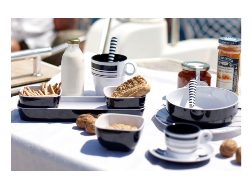 Sadu příborů MONACO s 24 díly (pro 6 osob) zdobí námořnické pruhy. Příbory jsou velice odolné- jsou vyrobené z nerezové oceli.