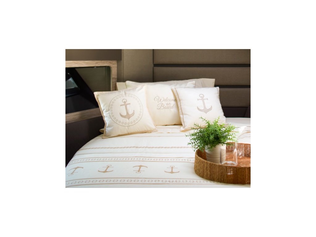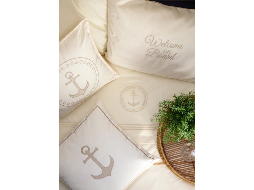 Souprava polštářů na loď, ideální do kabiny nebo salónku. S námořním designem a vyšívanými detaily se Santorini hodí k dekám a ložnímu prádlu ze stejné kolekce.