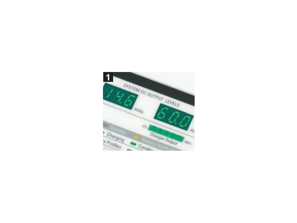 Dva digitální displeje a ukazatel výstupního výkonu | Typ baterie a servisní indikátory EZ View | Režimy automatické konzervace a autotestu |