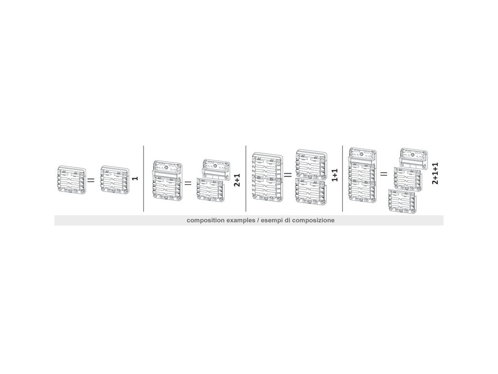 Použijte základní moduly 1 a 2 k uspořádání zobrazených kombinací a mnoha dalších. Jediným limitem je maximální celkové zatížení 100A.