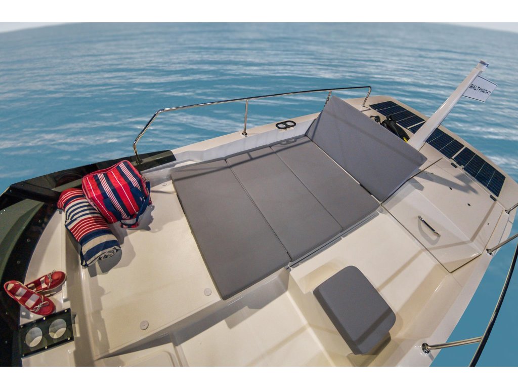 Venkovní pohodlí zajišťuje: velký funkční kokpit s mnoha sedadly, sluneční terasa na střeše s místem pro opalování a volitelná, přídavná možnost poloha řízení, tzv. flybridge, stejně jako příďová lavička nebo pohodlné chodby kolem lodi.