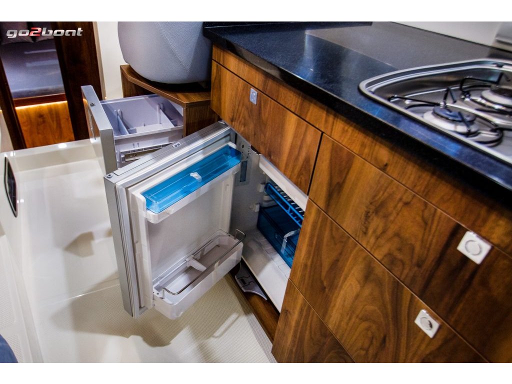 Salón je jasný, slunečný a příjemný jak pro kormidelníka, tak pro celou posádku. Toto uspořádání interiéru spojuje účastníky plavby a umožňuje být spolu bez ohledu na aktivity. Prosklený kokpit vám umožňuje obdivovat výhledy a zároveň chrání před větrem a špatným počasím.