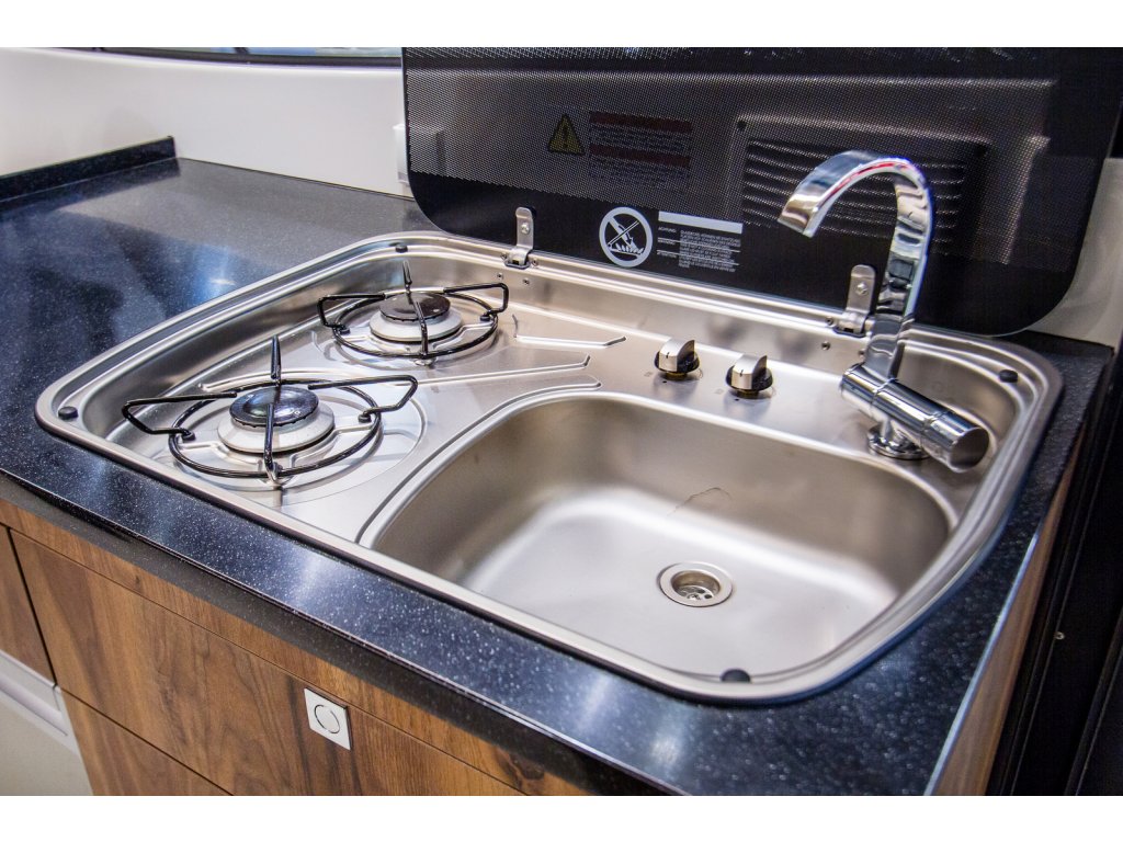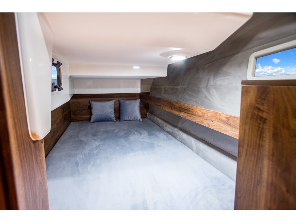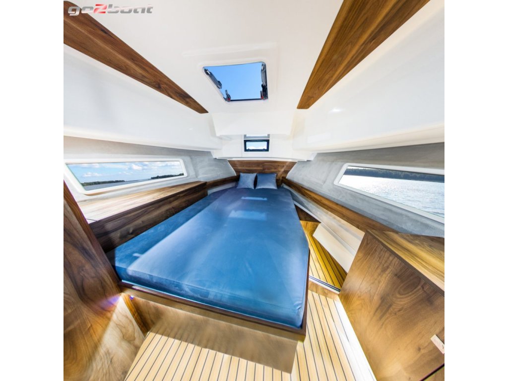 V podpalubí jsou 2 pohodlné uzamykatelné spací kabiny. Vyznačují se plnou výškou stání, dostupností nábytkových skříní a pohodlnými lůžky v plné velikosti. A to vše pečlivě a útulně dokončili zkušení stavitelé lodí v loděnici Balt-Yacht. Sanitární kabina také uživatele nijak neomezuje - je světlá, ergonomická, prostorná a vybavená všemi nezbytnými instalacemi - toaleta, umyvadlo, sprcha, topení a ventilace.