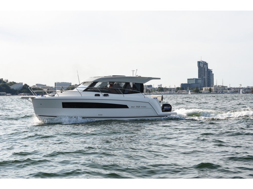 BALT 918 TITANIUM je cestovní jachta s prostorným obývacím pokojem v horní úrovni a prostorným kokpitem s dalším posezením. Design jachty je výsledkem porozumění potřebám uživatelů a zákazníků, kterým nezáleží na velkých rozměrech lodi - ale na její funkčnosti vyplývající z promyšlených řešení a prostoru, manévrovatelnosti a elegance.